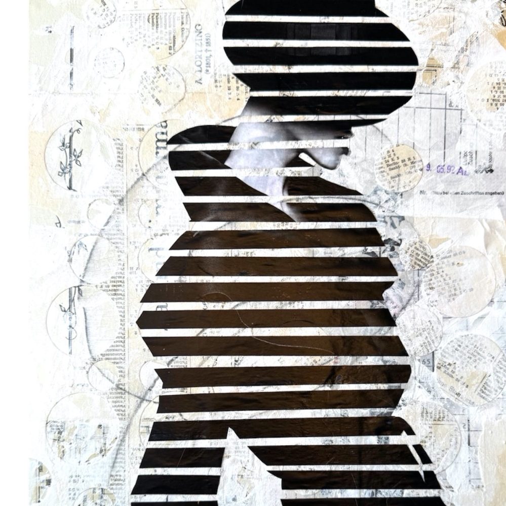 Birthe Çil arbeitet als zeitgenössische Collage-Künstlerin mit Vintage-Materialien und vielschichtigen